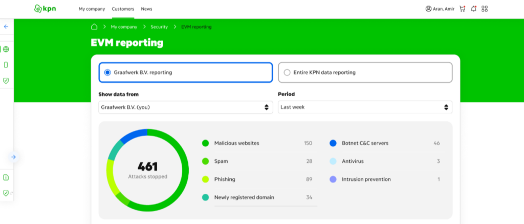 EVM is geschikt voor alle toestellen en laat je altijd en overal veilig samenwerken. Het beschermt je én geeft je inzicht in digitale veiligheid. Het Extra Veilig Mobiel dashboard is nu beschikbaar voor alle klanten. Je kunt nu zelf zien hoe vaak en welke soorten dreigingen – zoals phishing-pogingen, malware en kwaadaardige websites – zijn geblokkeerd. Zo wordt jouw digitale veiligheid niet alleen geregeld, maar ook inzichtelijk! KPN en Axoft maken dat je overal – óók in verre buitenlanden – veilig online kunt ondernemen. Meer weten? sales@axoft.nl